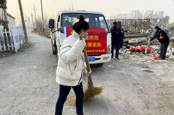 2018级研究生党员于雨潼是第一个加入到家乡疫情防控队伍的志愿者。在得知山东巨野县综合行政执法局召集青年党员志愿者,成立“疫情防控党员突击队”的消息时,她义无反顾地提交了申请信息,成为了“突击队”的一员。在第一次工作会上,全体志愿者在党旗下宣誓,并一起认真学习了防控相关应对措施。“突击队”每天的工作任务是对社区垃圾收集点及时进行消杀清运,结合巡查加大对群众防控知识的宣传教育,强化流动经营人员等重点人群的防控意识和自我防护能力,对环卫工人进行每日体温测量,配备口罩、手套等必备的防护用品。“身边有朋友质疑,放假在家好好待着不好吗?为什么要去当志愿者?”于雨潼的回答是:“我是党员我要上!在防控疫情的关键时期,就是要发挥党员先锋模范作用,能走上一线,在实践中锤炼坚强党性,展现新时代研究生的社会责任感和使命担当,为保障民众身体健康和生命安全贡献自己的一份力量。”