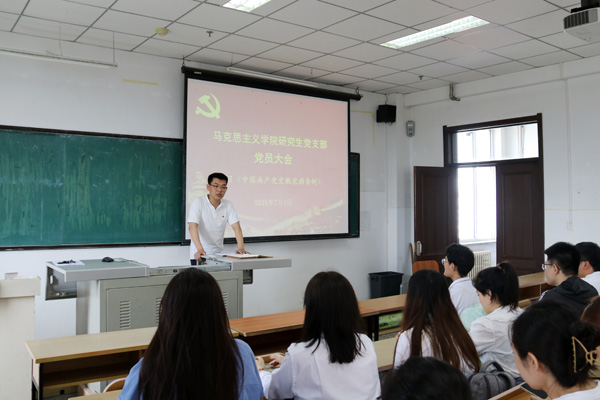 研究生党支部组织党员学习《中国共产党党徽党旗条例》(2021年6月26日中共中央发布,以下简称《条例》)。会议由党委副书记、研究生党支部书记王权主持。