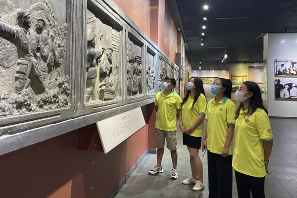 研究生“沂蒙红色研学”活动的一项重要内容。受疫情影响,家在山东省临沂市的2020级刘成程、2019级匡倩和2021级崔淑雯、张强等4名研究生组成团队,前往沂蒙革命纪念馆,开展以“弘扬沂蒙精神,传承红色基因”为主题的暑期社会实践活动。