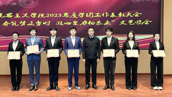 在综合楼三楼报告厅举行2023年度学团工作表彰大会。学院党委书记徐建伟、院长马光焱、副院长于浚湜、党委副书记王权出席表彰大会。