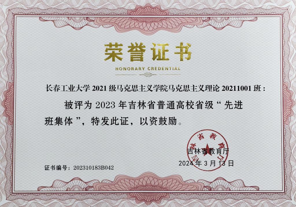 h动漫 20211001班荣获2023年吉林省普通高校先进班集体