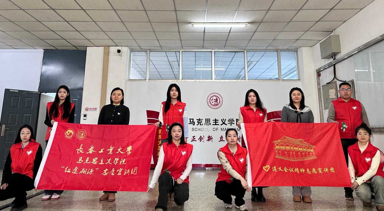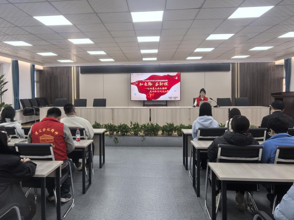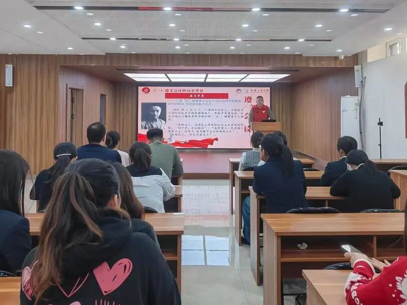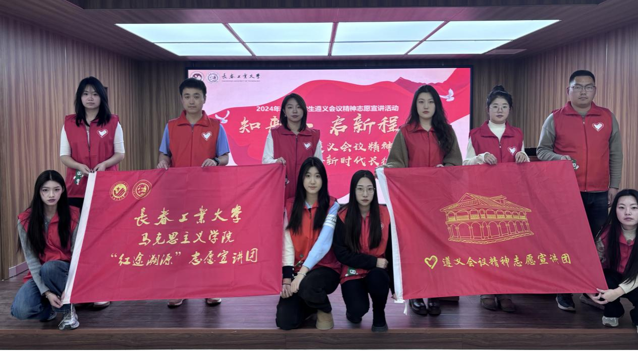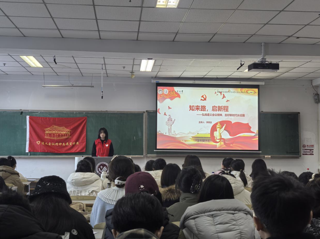 成立“红途溯源”志愿宣讲团,经过扎实筹备、积极申报,在全国近6000支宣讲团队中脱颖而出,入选“全国大学生遵义会议精神志愿宣讲团”。宣讲团成立以来,秉持“坚定信念、坚持真理、独立自主、团结统一”的遵义会议精神,成功开展了问卷调研、深度走访、理论宣讲等系列活动,以实际行动彰显青年一代的责任担当。