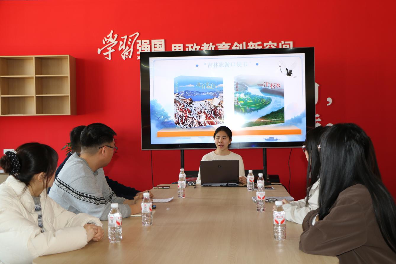 的李思雨和白惠瑜同学立足宏大视野与家国情怀进行分享。李思雨同学对《“十五五”规划纲要》进行了解读,呼吁同学们将个人职业规划融入国家发展蓝图,做时代的奋进者;白惠瑜同学则通过分享《北有长白》与《一江松水》,将地域文化之美与生态文明、文化自信相连,激发大家扎根白山黑水、投身地方振兴的家国情怀。