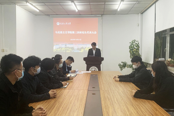 第三次研究生代表大会在学院会议室召开。大会的指导思想是:以习近平新时代中国特色社会主义思想为指导,深入贯彻落实习近平总书记关于青年工作的重要思想和关于教育的重要论述,深入学习宣传贯彻党的二十大精神,以保持和增强政治性、先进性、群众性为目标,发挥政治上的表率作用、组织上的动员作用、学习科研上的标兵作用,服务研究生成长,为学院发展建设贡献智慧与力量。