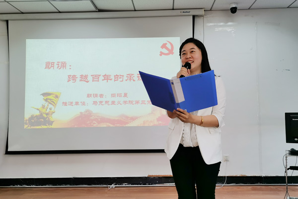 朗诵会上,师生们声情并茂、慷慨激昂地朗诵了一首首铿锵有力、鼓舞人心的红色诗歌,展现了革命先辈们坚定的理想信念、深厚的爱国情怀和顽强的斗争精神,艺术地表现了中国共产党100年来经历的苦难与辉煌,表达了全院师生“听党话、跟党走”的信心决心抒发了爱党爱国爱社会主义的真挚情感