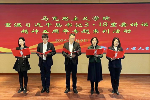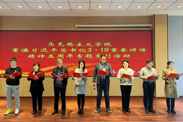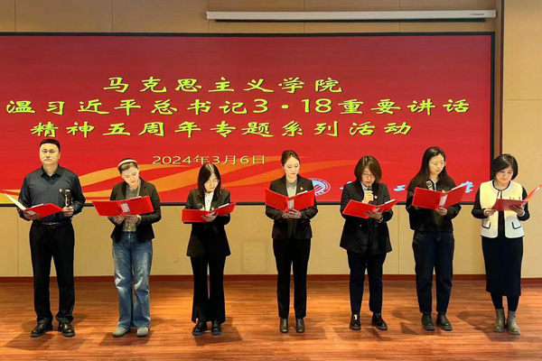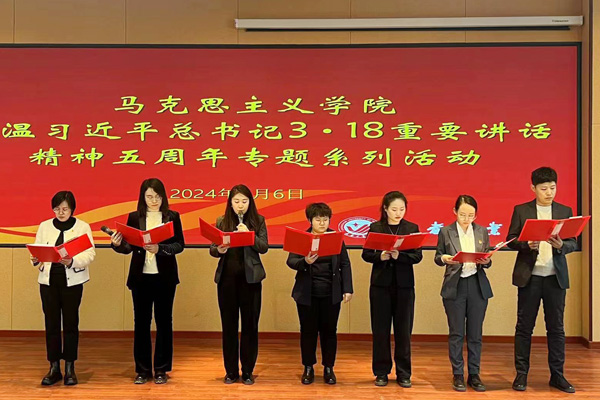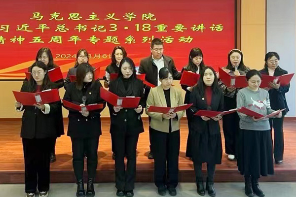在综合楼报告厅开展了重温习近平总书记“3·18”重要讲话精神五周年专题系列活动之“上好思政课,当好引路人”朗诵会。活动开始前,学院全体教师集体重温了习近平总书记“3·18”重要讲话内容。