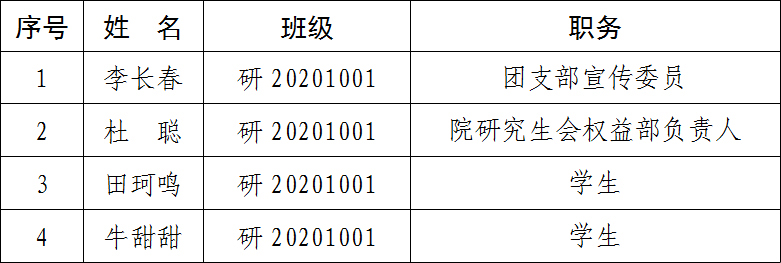 为了认真贯彻党的发展党员工作方针,充分发扬民主,增加发展党员工作的透明度,把好发展党员质量关,确保新党员质量,现将经本学院党委预审,拟接收的中共预备党员在全院范围内公示。公示时间为5天(2021年11月22日至2021年11月26日)。在公示期内,党内外群众如对拟接收的中共预备党员有意见,请以真实单位、姓名,用书面、电话等形式如实反映情况。群众反映的问题可受到法律保护,我们将严格保密。