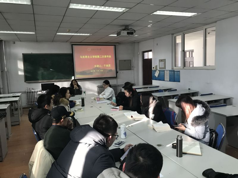 在林园校区软件楼教室举行第二次读书座谈会。学院助理及部分研究生同学参加读书会,学院副教授于浚湜老师主讲。