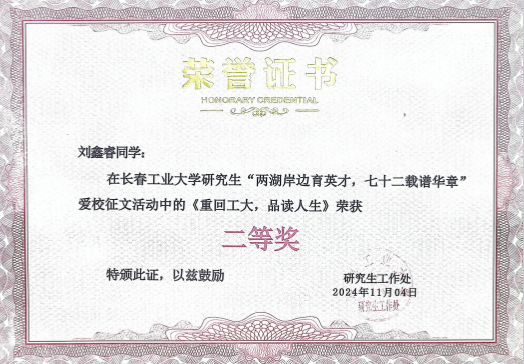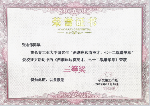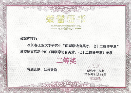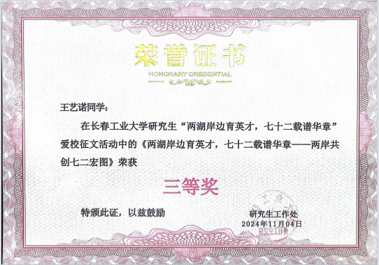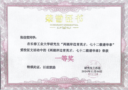 为深入学习宣传贯彻党的二十大精神,教育引导广大青年学子牢固树立爱党爱国、爱校荣校的责任感与使命感,进一步推动中华优秀传统文化传承发展,h动漫 研究生积极参加校研究生工作部(处)开展的“两湖岸边聚英才,七十二载谱华章”主题爱校征文活动,并荣获一等奖一项、二等奖两项、三等奖两项。此次获奖,不仅为学院赢得了荣誉,更是对青年学子爱校情怀的褒奖。