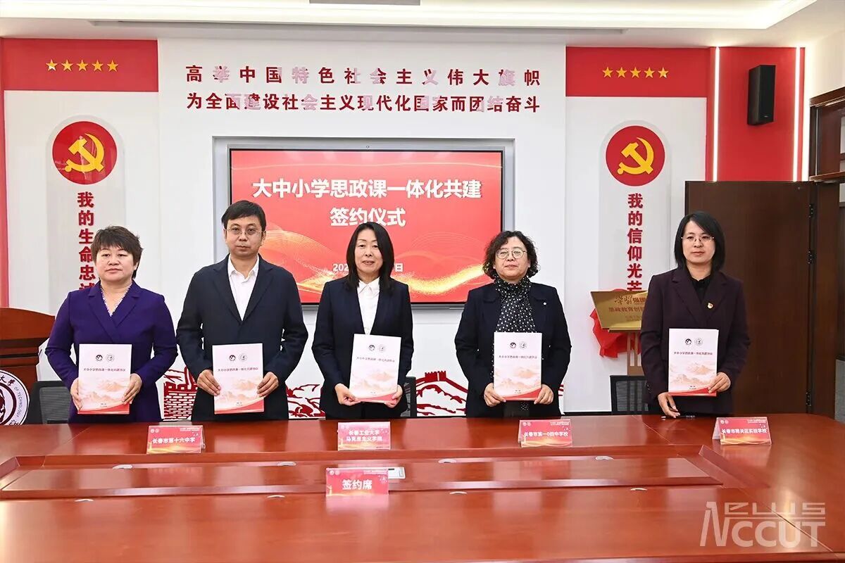 与长春市第十六中学、长春市第一〇四中学校、长春市第一〇三中学校、长春市南关区实验学校等共建学校共同签署合作协议,将凝心聚力、携手共进,共同构建目标层层递进、内容有机衔接、方法科学互补的一体化育人体系。长春市第一〇三中学校党支部书记袁波代表共建学校发言,表达了对深化合作、共育新人的坚定信心与美好期待。